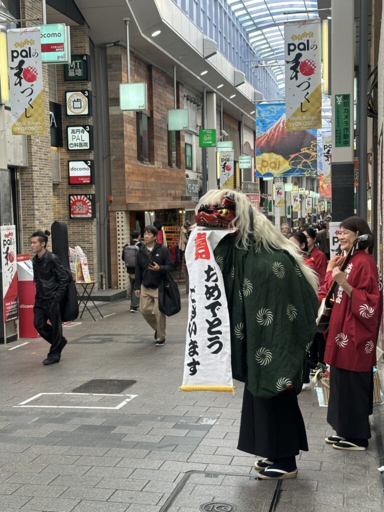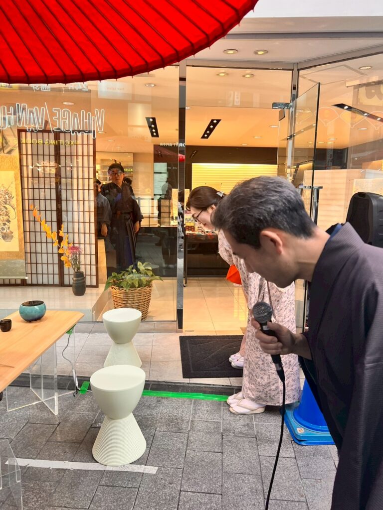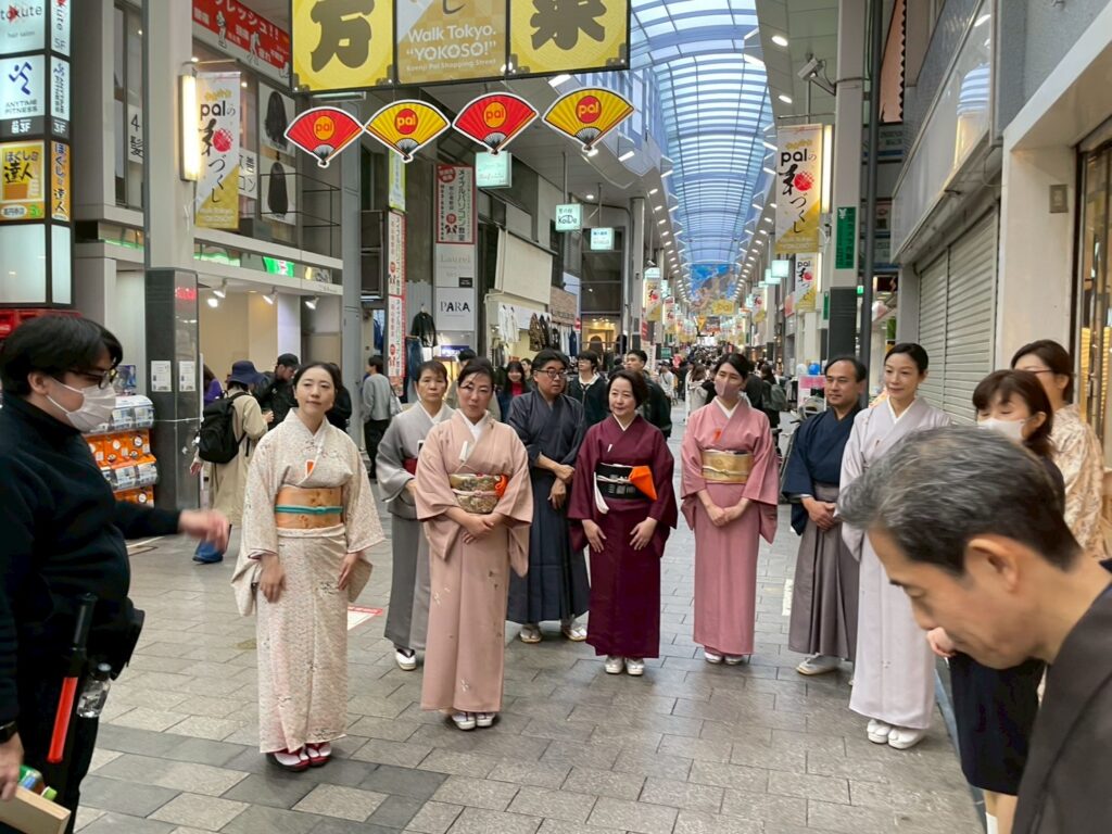 「翁家社中」メンバーの流暢な英語での呼び込みや解説も好評で、和風の装飾が施されたアーケード商店街での貴重な体験となりました。