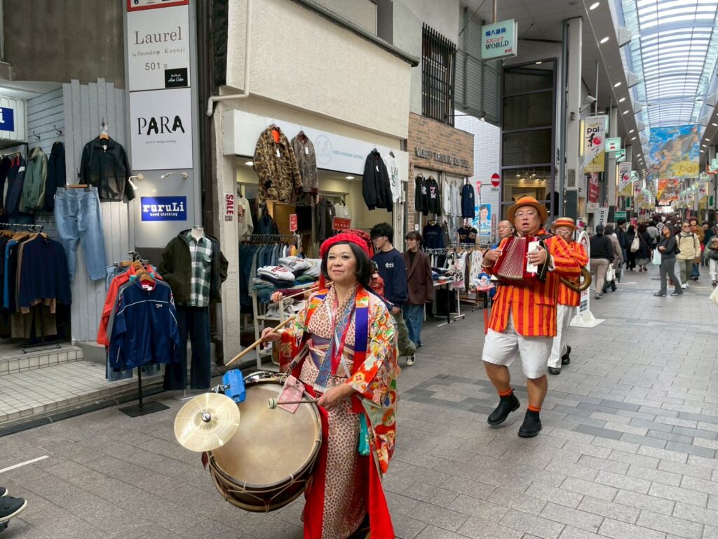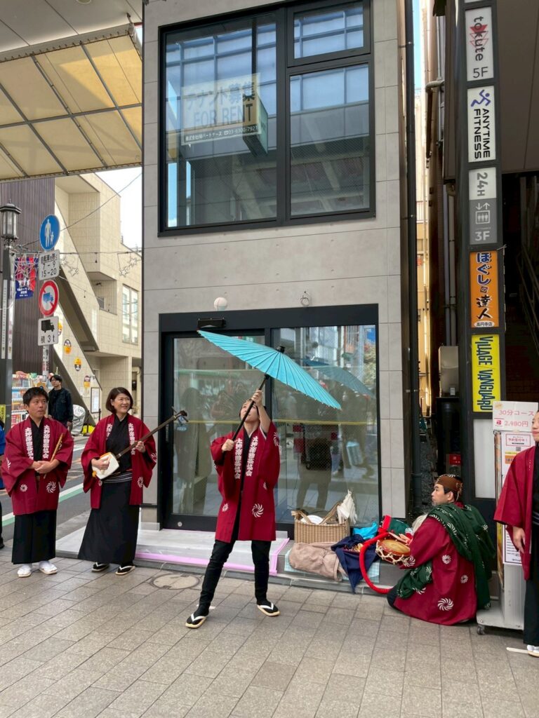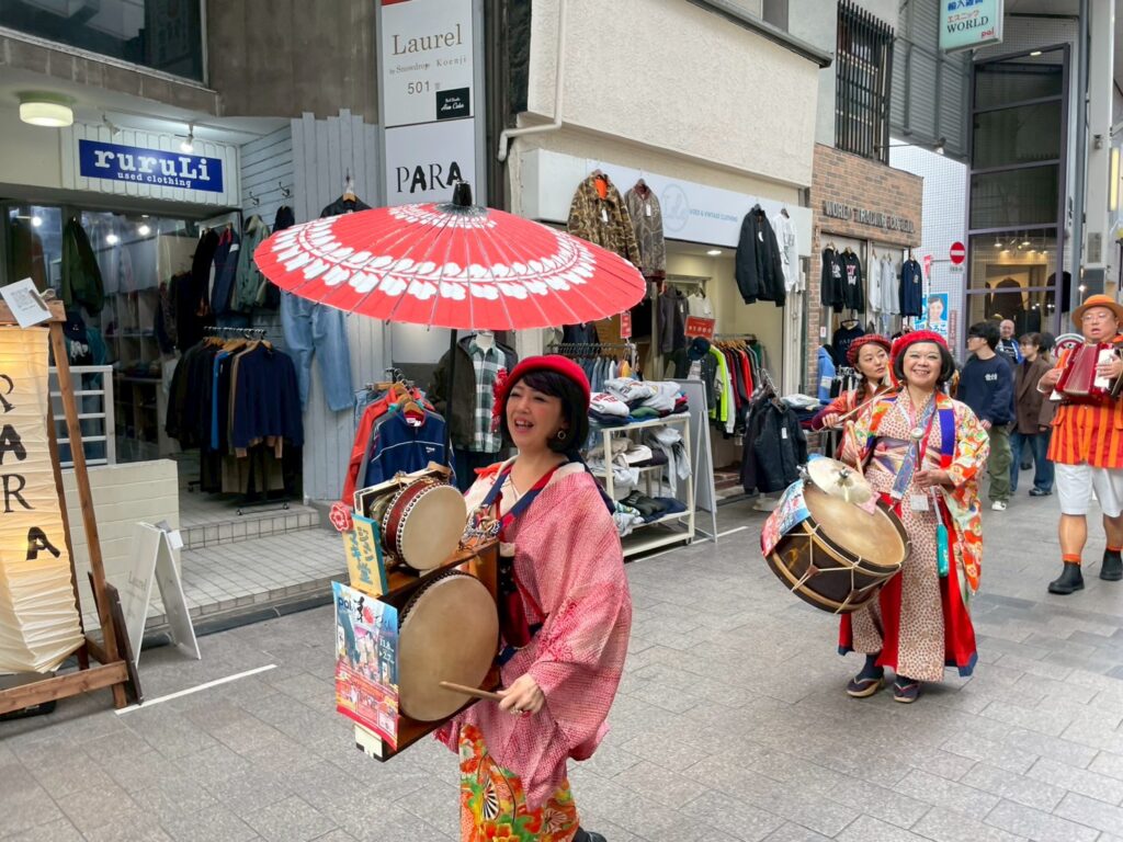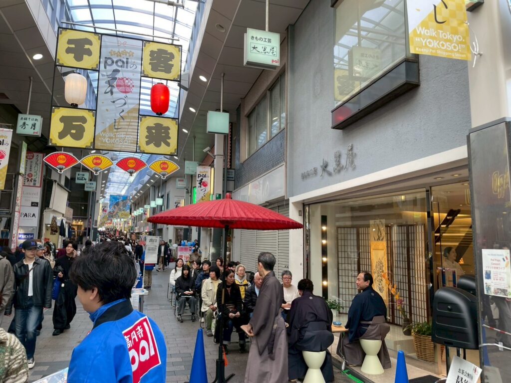 会場となったのは高円寺パル商店街の「きもの工芸 大黒屋」前。